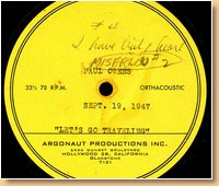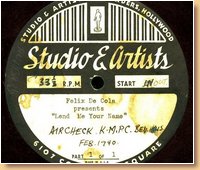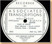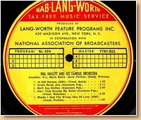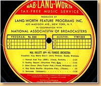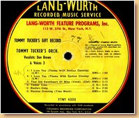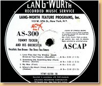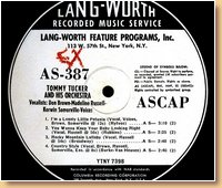 Lang-Worth Recorded Music Service AS-0387 Tommy Tucker & His Orchestra-Don Brown-Madeline Russell |