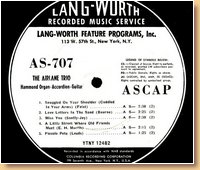 Lang-Worth Recorded Music Service 0707 The Airlane Trio |
