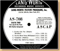 Lang-Worth Recorded Music Service 0708 Elayn Tyner-First Lady of The Piano |