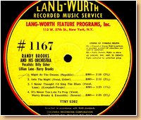 Lang-Worth Recorded Music Service 1167 Randy Brooks & Orchestra-Billy Usher-Lillian Lane-Harry Brooks |