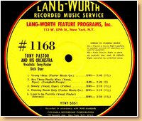 Lang-Worth Recorded Music Service 1168 Tony Pastor & His Orchestra-Dick Dyer |