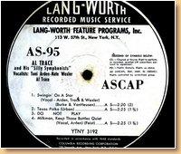 Lang-Worth Recorded Music Service AS-0095 Al Trace & His 'Silly Symphonies' - Toni Arden, Nate Wexler |