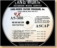 Lang-Worth Recorded Music Service AS-0388 The Cote Glee Club-Floyd Sherman |