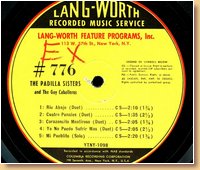 Lang-Worth Recorded Music Service AS-07776 The Padilla Sisters & The Gay Caballeros |