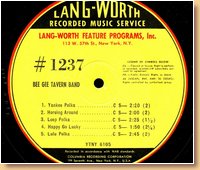 Lang-Worth Recorded Music Service AS-1237 Bee Gee Tavern Band |
